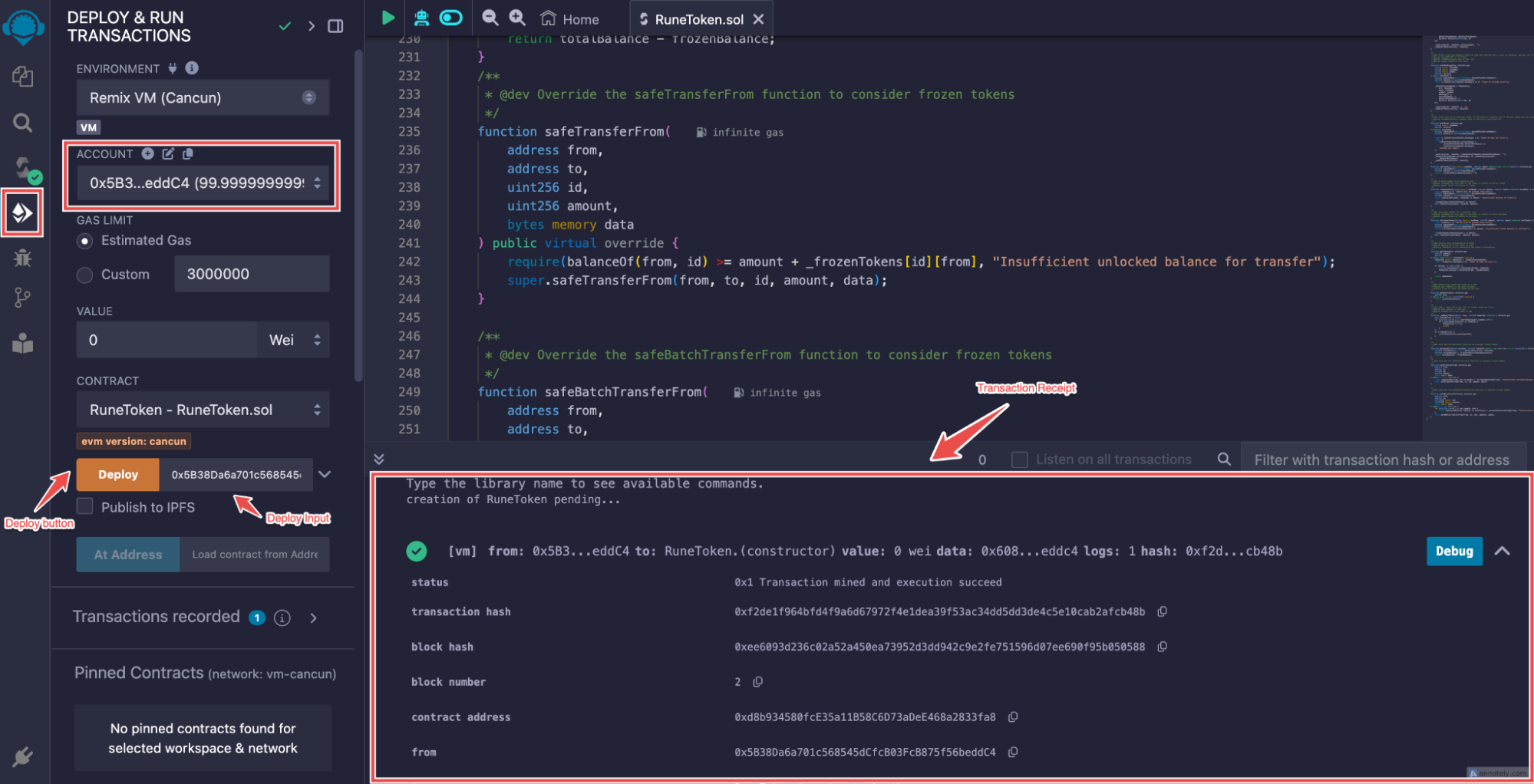 - Alternatively, you can also copy the contract address from the Transaction Receipt that appears after deployment.